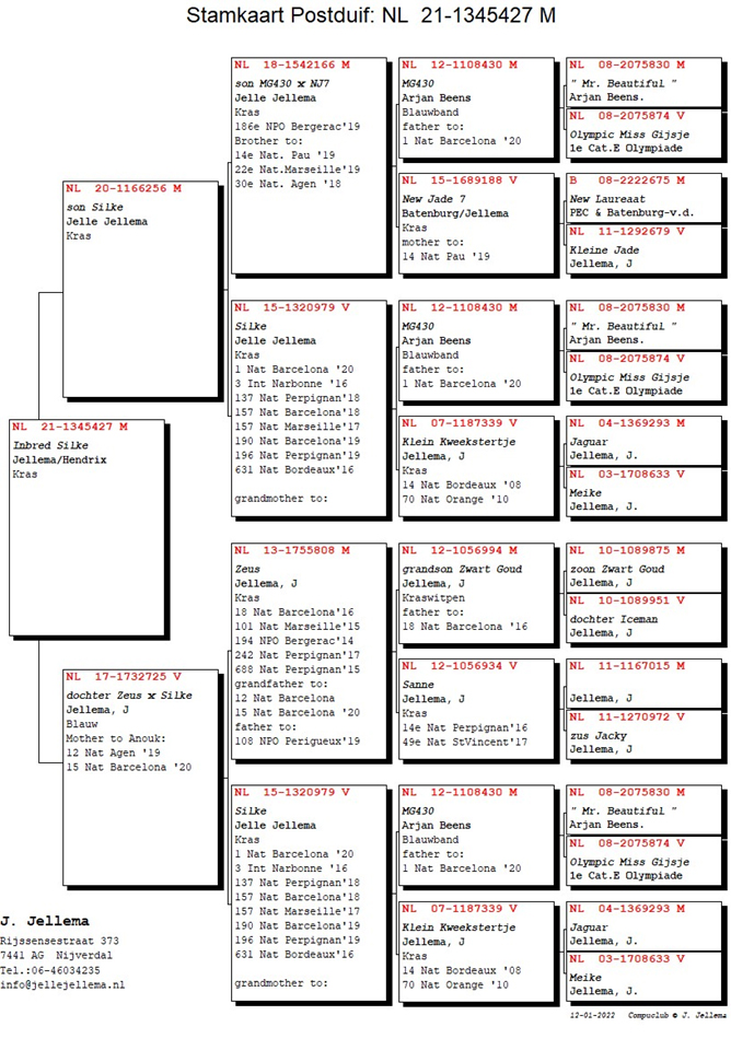 “希爾克近親427” NL21-1345427 斑公 血統書