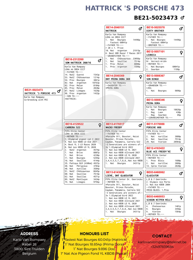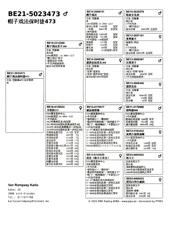 ●母鴿: BE16-4129522 “卡雷拉522” 保時捷911全妹鴿,出自“威寇福雷迪”X“莉芙”