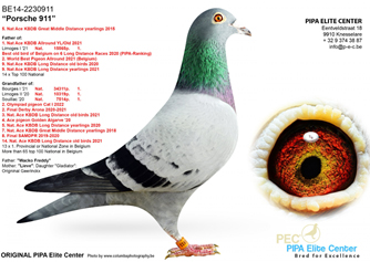 2020年PIPA排行榜(3場長距離賽)比利時最佳一歲鴿4位