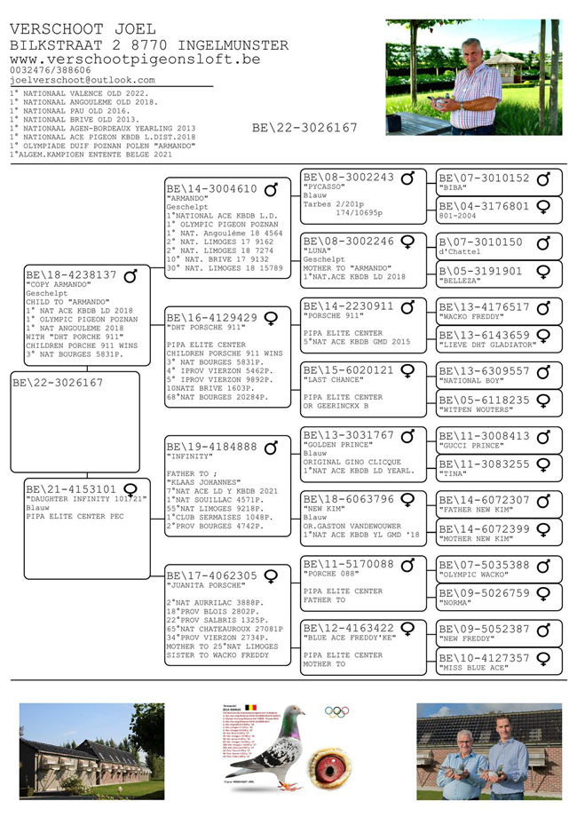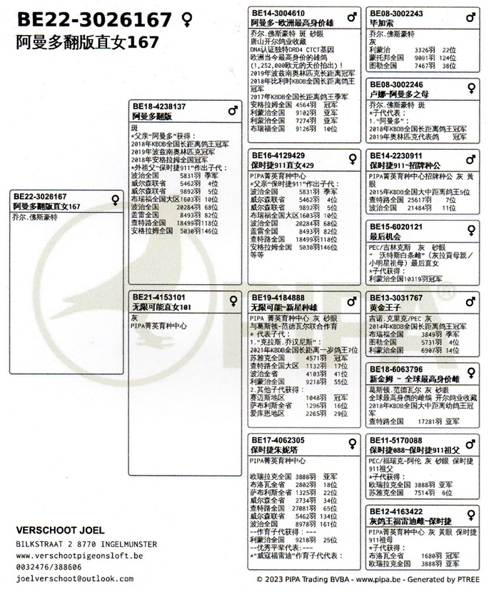 父親出自首羽售價超過100萬歐元的銘鴿“阿曼多”,是“阿曼多”的超級育種型直子