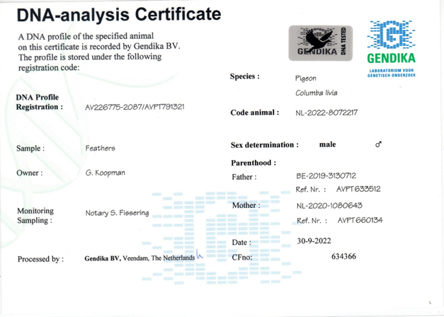 “3個1之全弟217” NL22-8072217班公 D.N.A.檢驗證明書