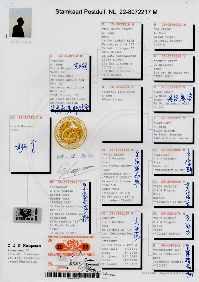 “考布曼新超級鴿3個1” NL21-4777111斑母 血統書