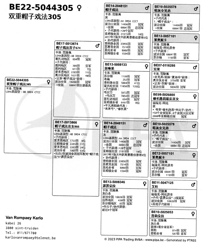 出自波治全國60.059羽冠軍&明星種鴿“帽子戲法”直子x直女