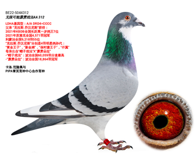 BE22-5044312 灰白羽.公. “蘇雅克冠軍”直子312 中文翻譯血統書