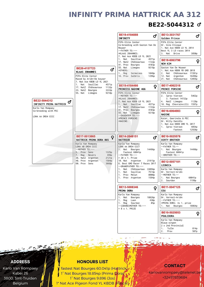 ●父鴿:BE20-4157723 “克拉斯.喬漢尼斯” ,頂級賽雄,出自超級基因,