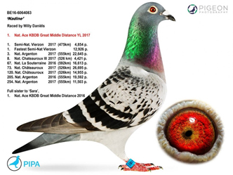 2017年KBDB全國大中距離一歲鴿王冠軍。