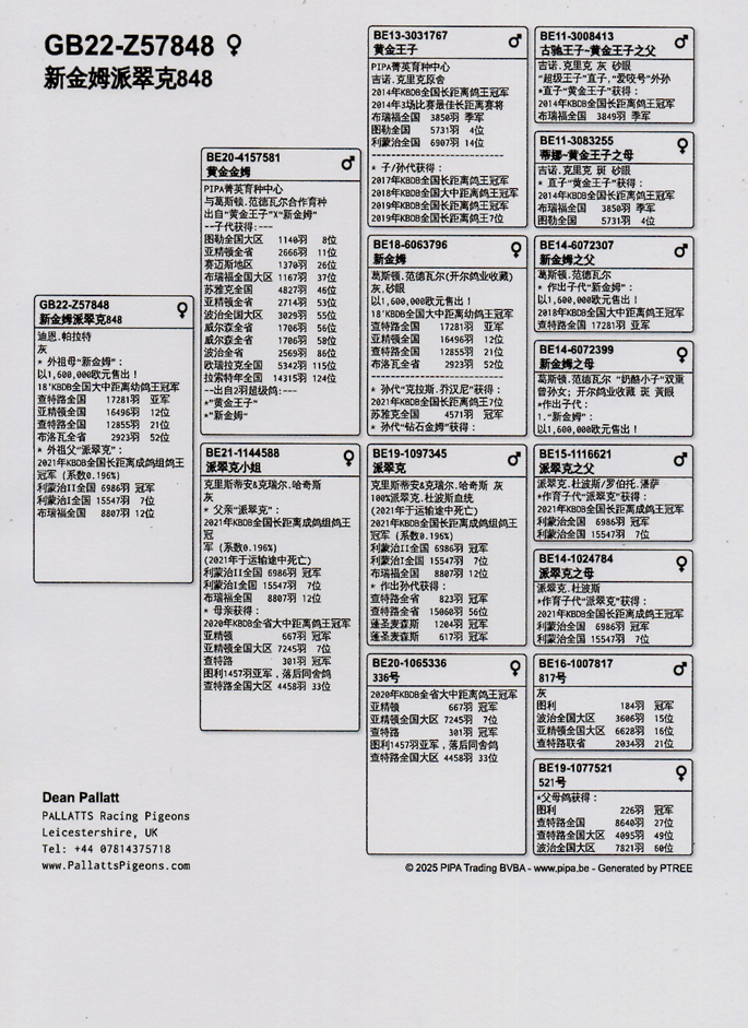 母親是KBDB全國長距離鴿王冠軍“派翠克”直女