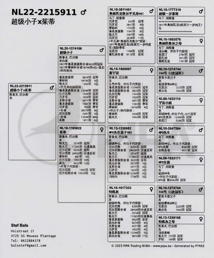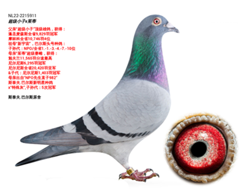 ●父鴿:NL20-1574106 “超級小子”,神奇賽雄,出自“新宇宙”,獲得: