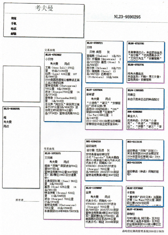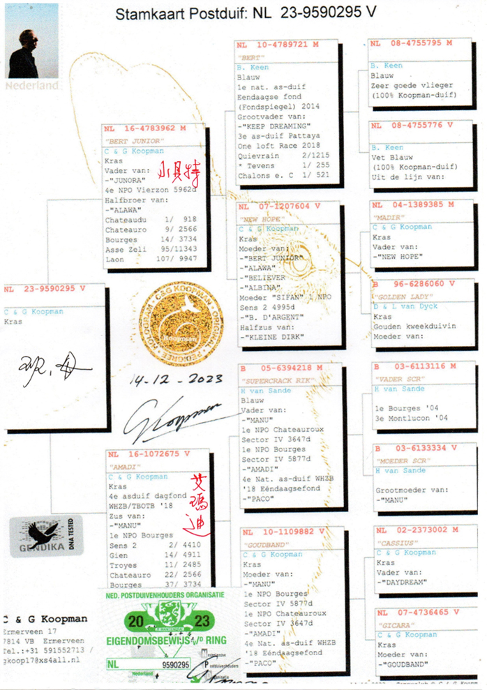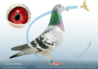 全平輩代表及佳績: 「瑪弩」: NL16-4784182灰母 NPO 查特魯國家賽4區3,647羽1名 19,192羽分速最高。 「帕寇」: NL16-4783976 灰公 NPO波治國家賽4區5.877羽2名