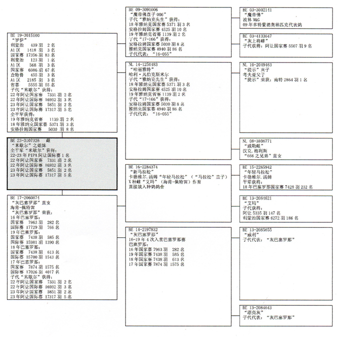 外祖母:B14-2197832灰母(PIPA評定4年最佳巴塞隆納鴿王31位)。