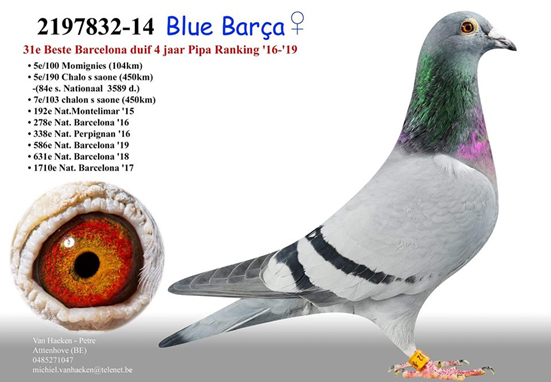 Remarkably, the children of "Roi" also performed very strongly, which is why he was allocated a breeding box exceptionally very quickly. A golden move A yes... "Daughter Blue Barcelona" was purchased from Van Haeken-Petre. Their "Blue Barcelona" won top prizes from Barcelona 4 years in a row. Those who play Barcelona know this is not that simple.