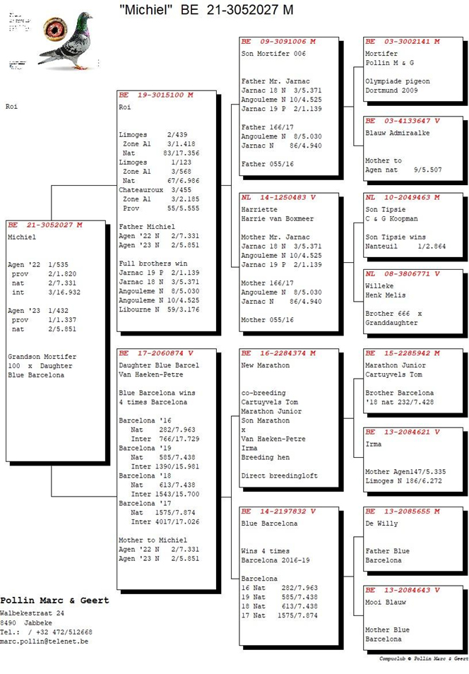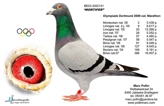 Marc and Geert, "Michiel" perfectly reflects the class of the Pollin pigeons and we wish you lots of success.