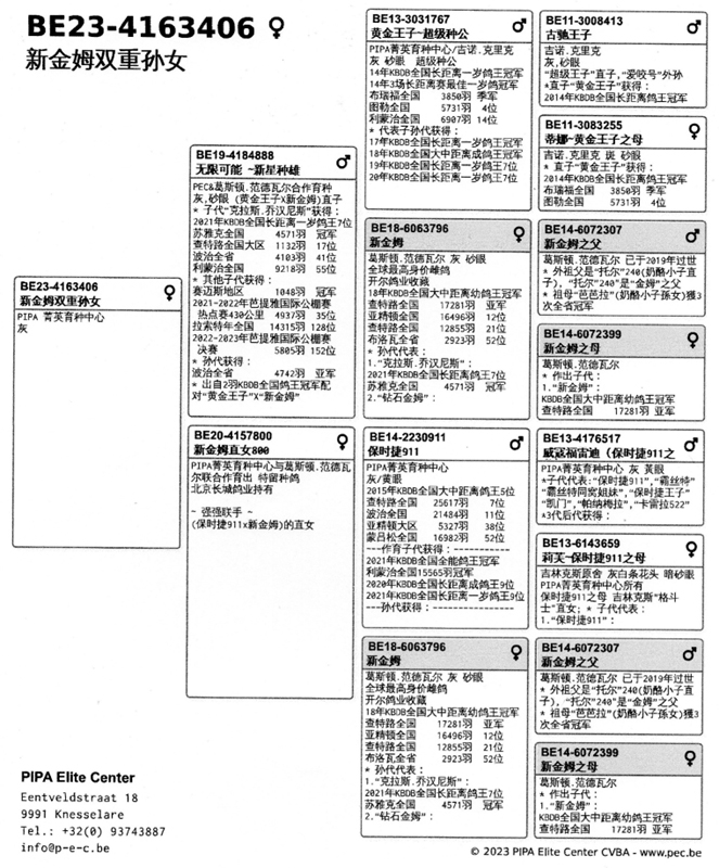 “新金姆近親406” B23-4163406灰母 中文翻譯血統書.