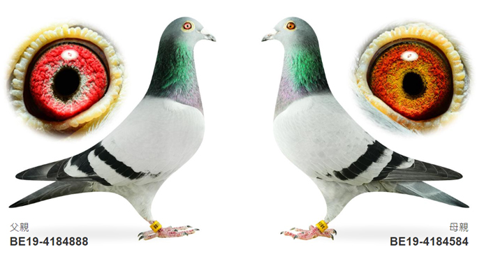 ●母鴿:BE19-4184584 “新金姆直女584”,與葛斯頓.范德瓦爾合作育種