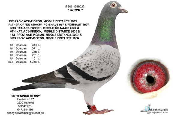 比利時中距離強豪賓尼.史帝文鴿舍超級種鴿:B03-4329022 公 ”氣魄號”