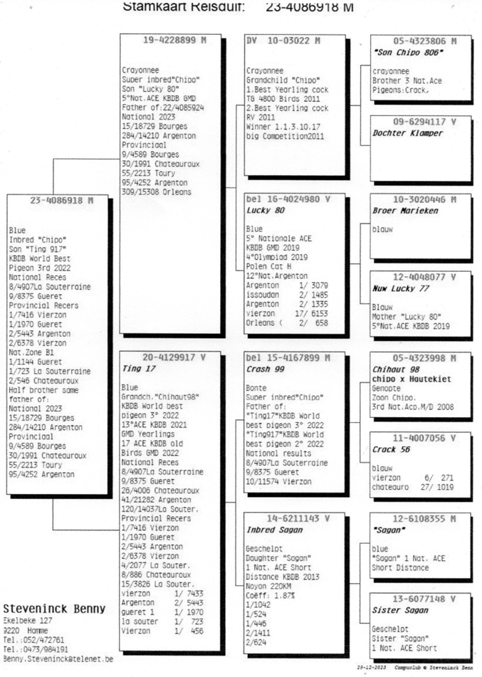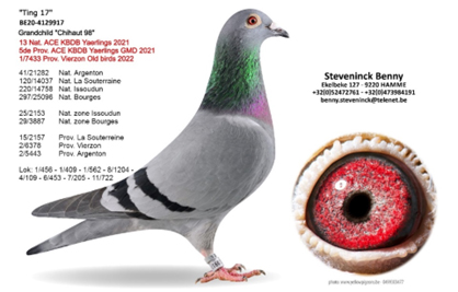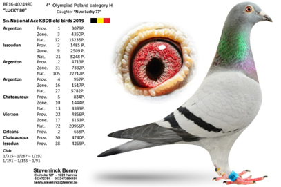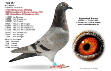 2022年: KBDB中長距離一歲鴿王全國15位 。