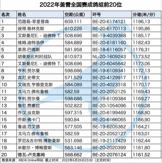 | 【國外賽鴿訊息】 2022年比利時蓋雷國家賽報導 日期:7月7日集鴿,於7月9日(星期六)早上7時10分放鴿。