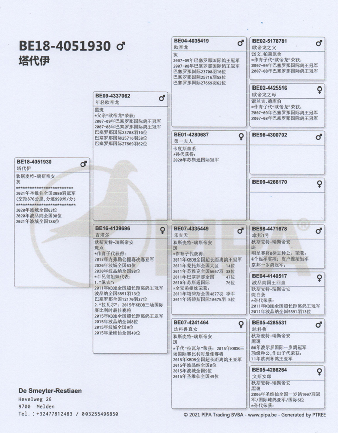 2021年拿邦國際賽28.875羽總冠軍鴿NL20-1655207斑母 血統書