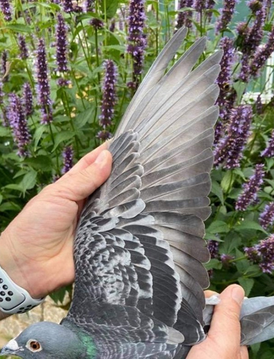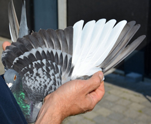 B21-2061050灰公獲得全國幼鴿組14.315羽總冠軍的翅羽。