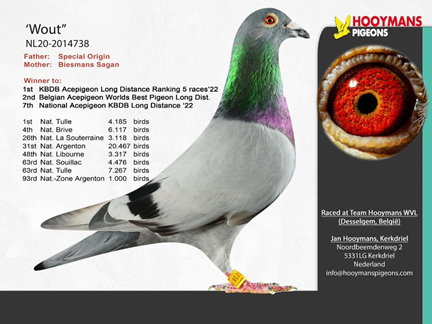 冠軍鴿“WOUT”NL20-2014738灰公 ”沃特”