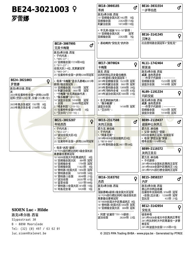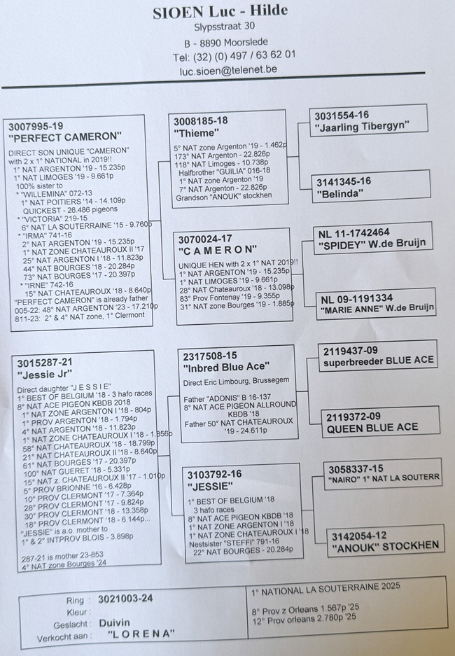 獲得比利時拉索特年一歲鴿5.288羽全國冠軍路克&希爾德.西翁( Sioen Luc & Hilde)鴿舍,該舍