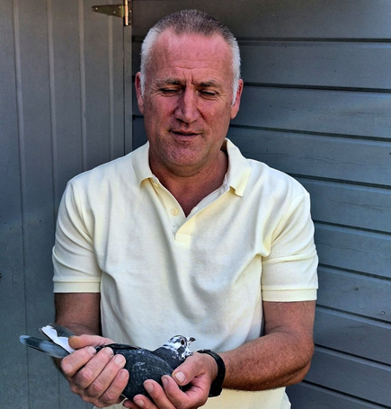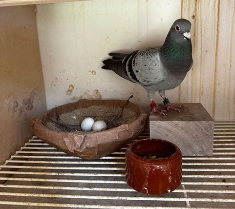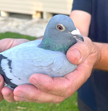 波城比利時全國3.028羽冠軍吉諾.費爾海恩( Verheyen Gino )鴿舍,該舍冠軍鴿B21-6124051斑白羽.母是在6月21日(星期六) 早上6時37分完成打鐘,空距為982.28公里, 平均分速為928.53 公尺/分