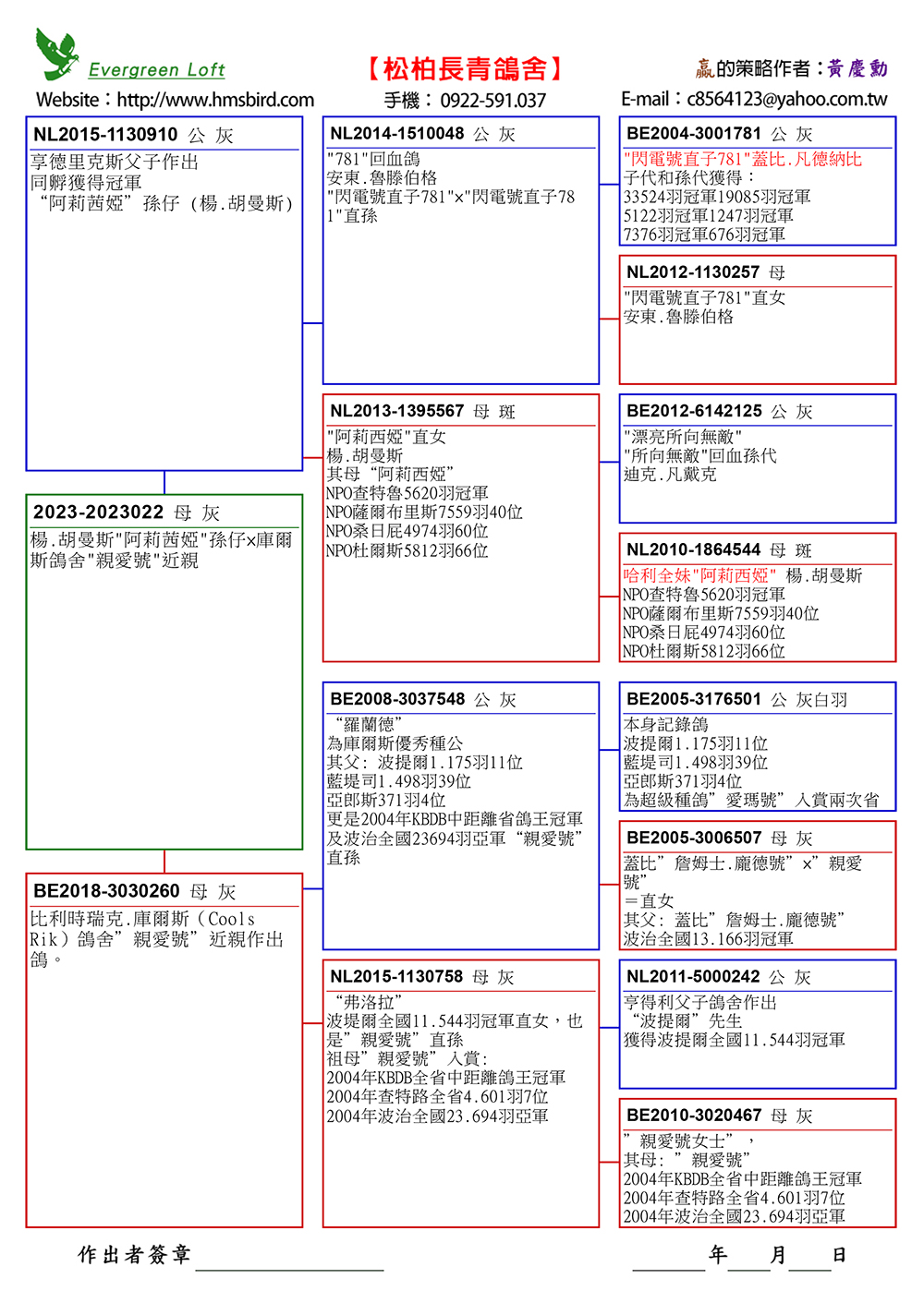 7、23-2023022灰母,特留種鴿,掛私環。 父鴿:NL15-1130910灰公,(安東.魯騰伯格”閃電直子781”回血X楊.胡曼斯”阿莉西亞直女”) 母鴿:B18-3030260灰母,比利時瑞克.庫爾斯(Cools Rik)鴿舍”親愛號”近親作出鴿。