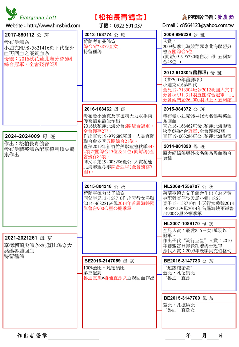 5、24-2024009斑母,特留種鴿,掛私環。已售出 父鴿:17-880112斑公,(2016秋花蓮北海分會6關綜合冠軍,全會殘存2羽)直子。 母鴿:21-2021261灰母,享德利頂尖鴿系×蓋比鴿系大銘鴿魯迪回血,下代好用。