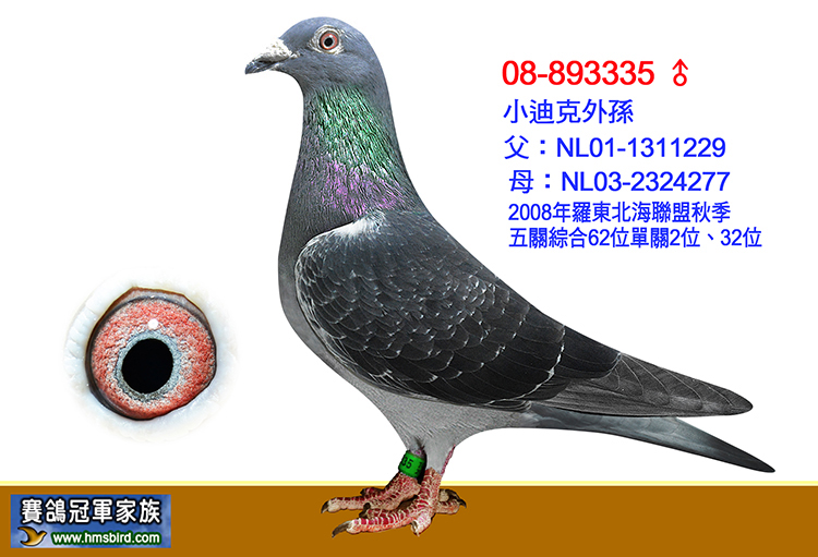 小迪克277引進台灣第一孵07-887455班母參賽07年大鵬灣聯合會冬季4.050羽綜合13位 |
