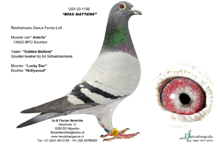 荷蘭夏拉肯的超級種鴿—黃金天馬號。 |