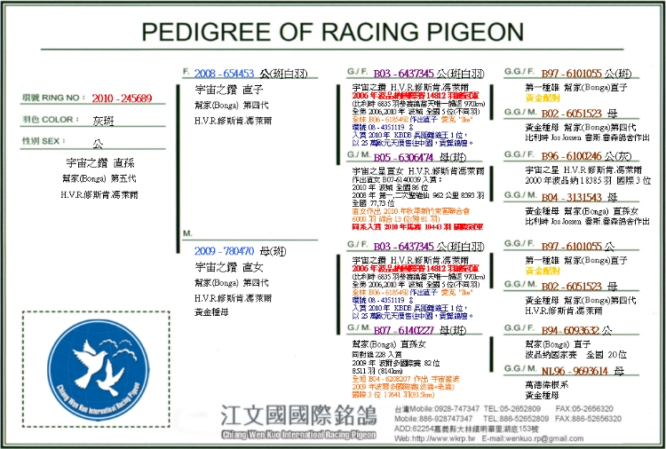 以25萬歐元天價售往中國,震驚鴿壇。 |