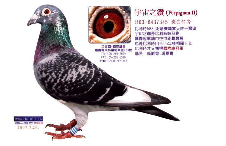 母 B06-6264624 全兄 B03-6437345“宇宙之鑽” 2006年培品納14.812羽 國際總冠軍
