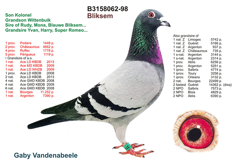 2009年荷蘭N.P.O查特丹(Chateaudun)全國第7區8.781羽500公里3位(總數21.520羽3位)。
