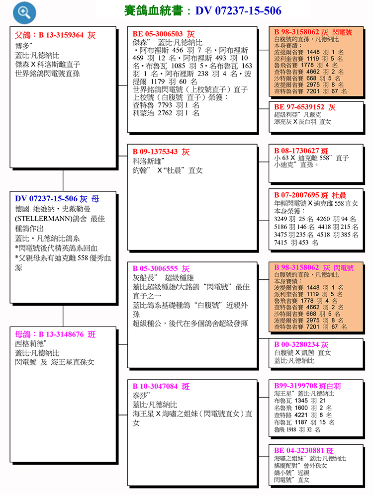 曾祖父:B98-3158062 “閃電號” (B88-3206112白腹號直孫)