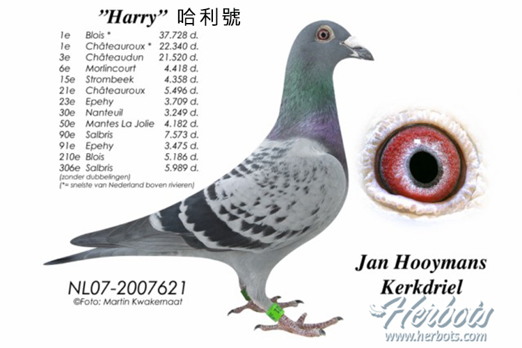 2009年荷蘭N.P.O.布洛依斯(Blois)全國第7區5.653羽548公里冠軍(總數37.728羽最快速)。