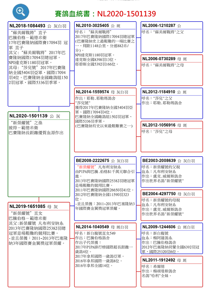 父鴿NL20-1501139灰公.中文翻譯血統書