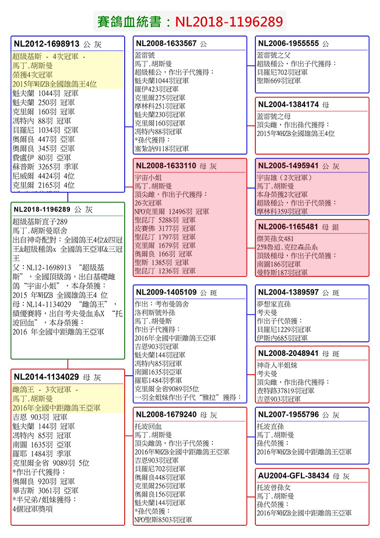 外袓父鴿:NL18-1196289 灰 公中文血統書