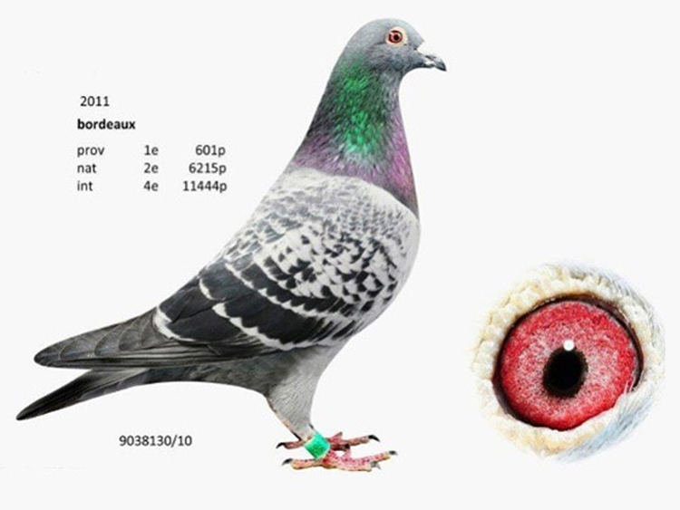 B10-90385130斑公,貝肯尼父子鴿舍,本身入賞2011年波爾多(Bordeaux)國際賽739公里, 比利時全國6.217羽亞軍、國際11.444羽4位。